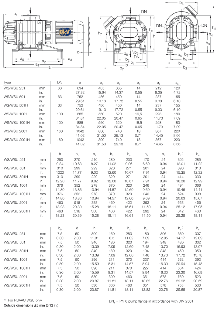 - Bơm tăng áp chân không Leybold RUVAC WSU 1001 có đầu kết nối khí vào/ra: DN 100 PN6.