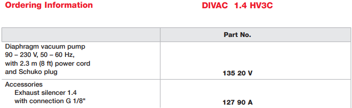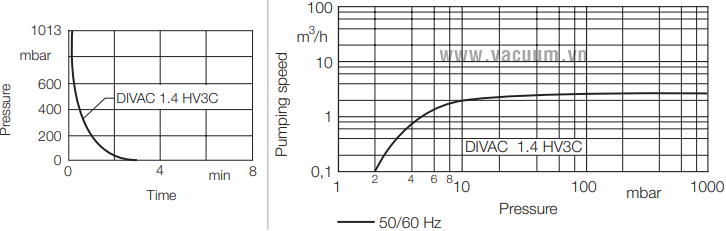 - Bơm chân không Leybold DIVAC 1.4 HV3C hoạt động êm ái, có độ ồn max: 48 dB(A).