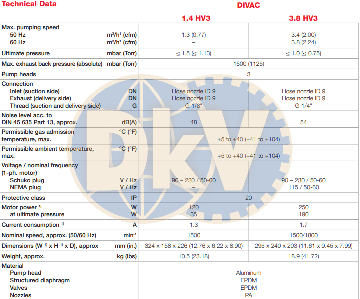- Trọng lượng bơm chân không Leybold DIVAC 3.8 HV3 : 18.9 kg.