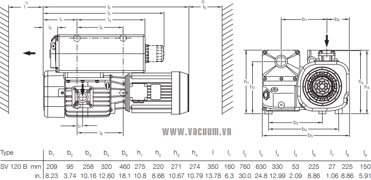 - Bơm chân không Leybold SOGEVAC SV 120 B, bơm hút chân không Leybold SOGEVAC SV 120 B, Leybold vacuum oil sealed vacuum pumps SOGEVAC SV 120 B là loại bơm chân không vòng dầu, 1 cấp, có lưu lượng max: 110 m3/h, độ chân không đạt < 0.5 mbar.(khi đóng chấn lưu khí Gas Ballast), 1.5 mbar (khi mở chấn lưu khí Gas Ballast).