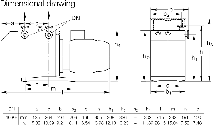 - Cổ hút của bơm chân không Leybold TRIVAC D 40 BCS tiêu chuẩn ISO: DN 40KF.