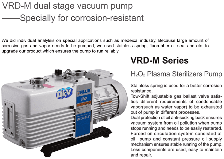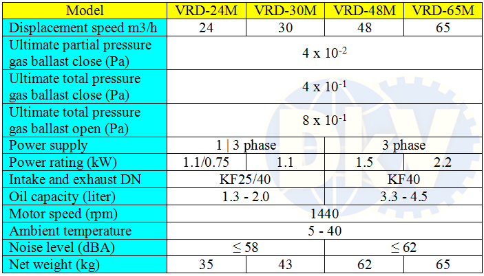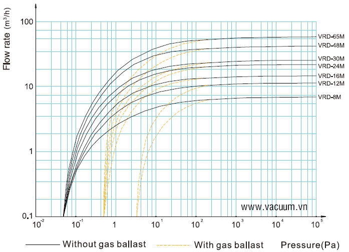 - Bơm chân không Y tế Value VRD-30M, Value Oil Lubricated Rotary Vane Vacuum Pumps VRD-30M thuộc dạng bơm hút chân không vòng dầu (oil-flooded), 2 cấp (dual stage) có lưu lượng: 30 m3/h, độ chân không 4x10-1Pa (khi đóng chấn lưu khí Gas Ballast) và 8x10-1 Pa (khi mở chấn lưu khí Gas Ballast), độ chân không tuyệt đối 4x10-2Pa | 4x10-4 mbar (khi đóng chấn lưu khí Gas Ballast) chuyên dùng để hút chân không trong y tế.
