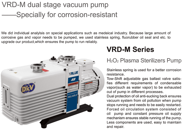 - Bơm chân không Y tế Value VRD-48M, Value Oil Lubricated Rotary Vane Vacuum Pumps VRD-48M thuộc dạng bơm hút chân không vòng dầu (oil-flooded), 2 cấp (dual stage) có lưu lượng: 48 m3/h, độ chân không 4x10-1Pa (khi đóng chấn lưu khí Gas Ballast) và 8x10-1 Pa (khi mở chấn lưu khí Gas Ballast), độ chân không tuyệt đối 4x10-2Pa | 4x10-4 mbar (khi đóng chấn lưu khí Gas Ballast) chuyên dùng để hút chân không trong công nghiệp.