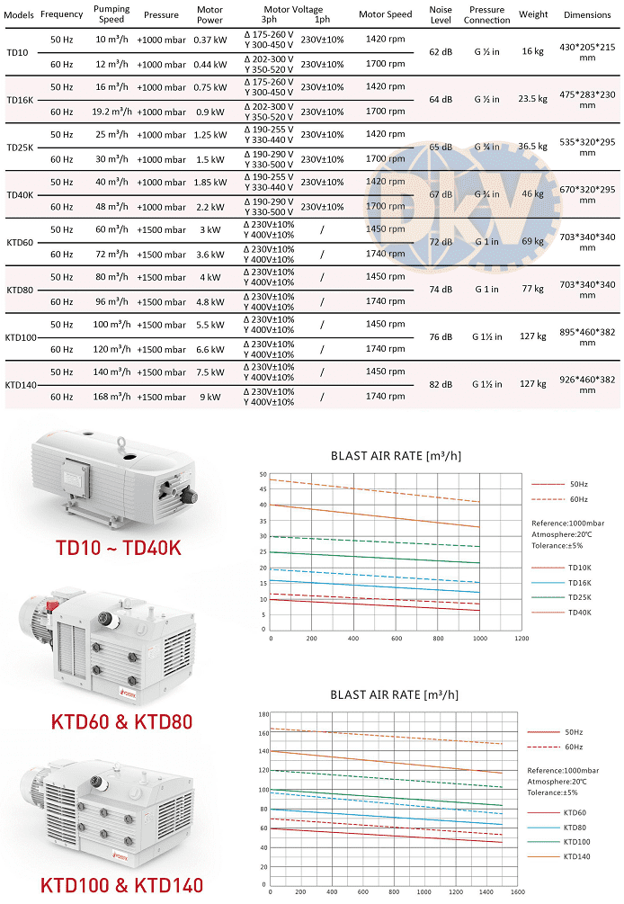 - Máy nén khí Wordfik KDT100, Wordfik dry rotary vane compressor KTD100: là loại máy nén khí không dầu, cánh gạt, cỡ lớn, dùng trong phòng thí nghiệm, dây chuyền công nghiệp. Máy nén khí Wordfik KDT100 có lưu lượng max: 100 m3/h, áp thổi nén khí max: 1500 mbar (1.5 bar).