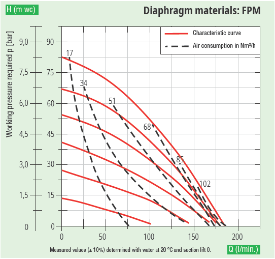 - Bơm màng khí nén Lutz 5612+060, Lutz diaphragm pump 5612+060: thuộc loại bơm màng chống cháy nổ, dòng 1" Bolted Version (metallic), có thân bơm Aluminium, màng bơm FPM, lưu lượng tối đa: 182 lít/phút, dị vật rắn qua bơm đường kính < 6.4 mm.