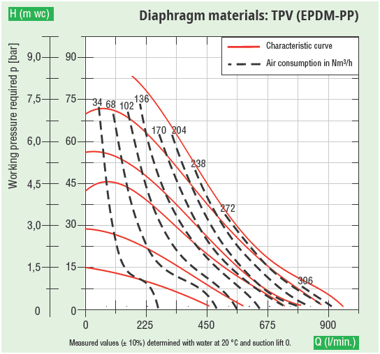 - Vật liệu chính của bơm màng khí nén Lutz 5615+020: thân bơm: Aluminium, màng bơm TPV (EPDM-PP), vật liệu van - seals: TPV (EPDM-PP), EPDM. Cấp (tiêu chuẩn) chống cháy nổ: Ex II 2 GD c TX, nhiệt độ môi trường làm việc: 930C.