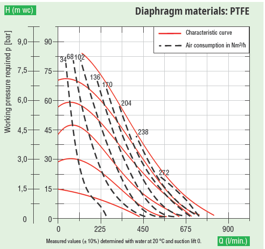 - Hoạt động ở áp khí nén < 8.2 bar. Độ hút sâu max: 6.1 m.