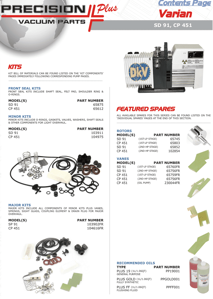 - Phụ tùng bơm chân không Varian SD 91, Repair kits and part for Varian vacuum pump SD 91: được sản xuất và cung cấp bởi Precision Plus thuộc Tập đoàn Atlas Copco dưới dạng OEM. Các phụ tùng, phụ kiện bơm chân không Varian SD 91 gồm: gioăng phớt, vòng đệm, vòng bi, bích chặn, lò xo....