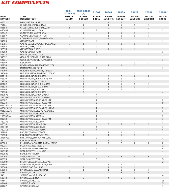 PHỤ TÙNG BƠM CHÂN KHÔNG ALCATEL 2012 A | ALCATEL KITS AND SPARES 2012 A