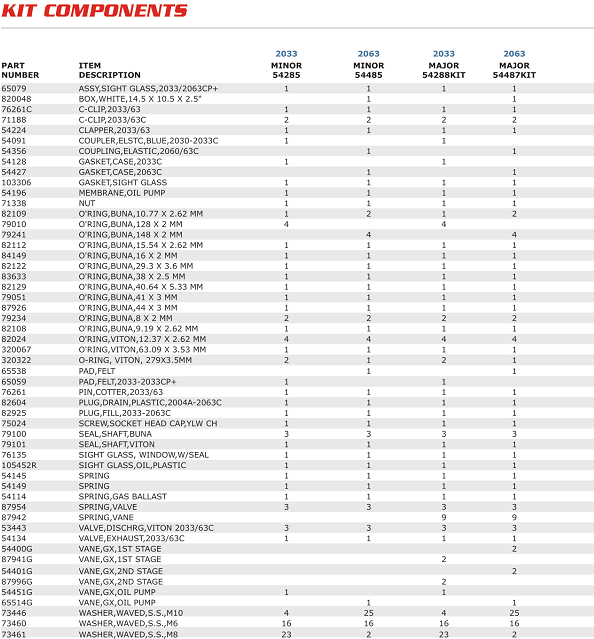 PHỤ TÙNG BƠM CHÂN KHÔNG ALCATEL 2033 | ALCATEL KITS AND SPARES 2033