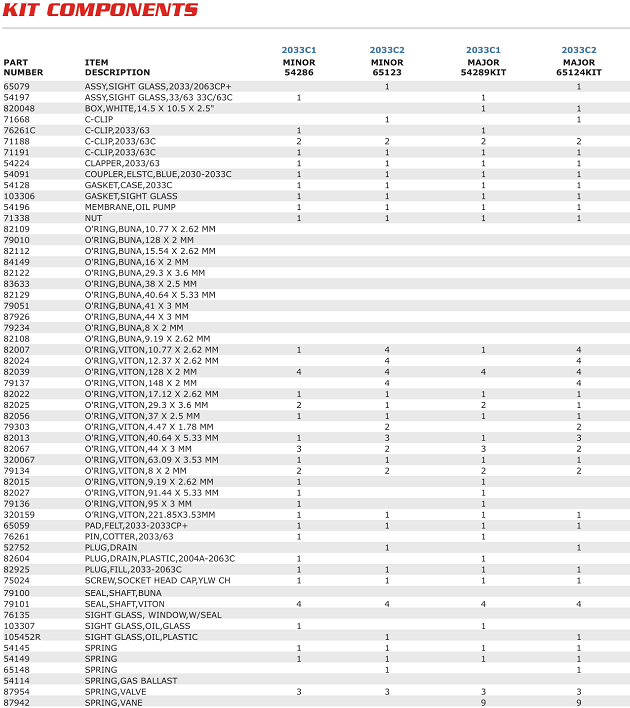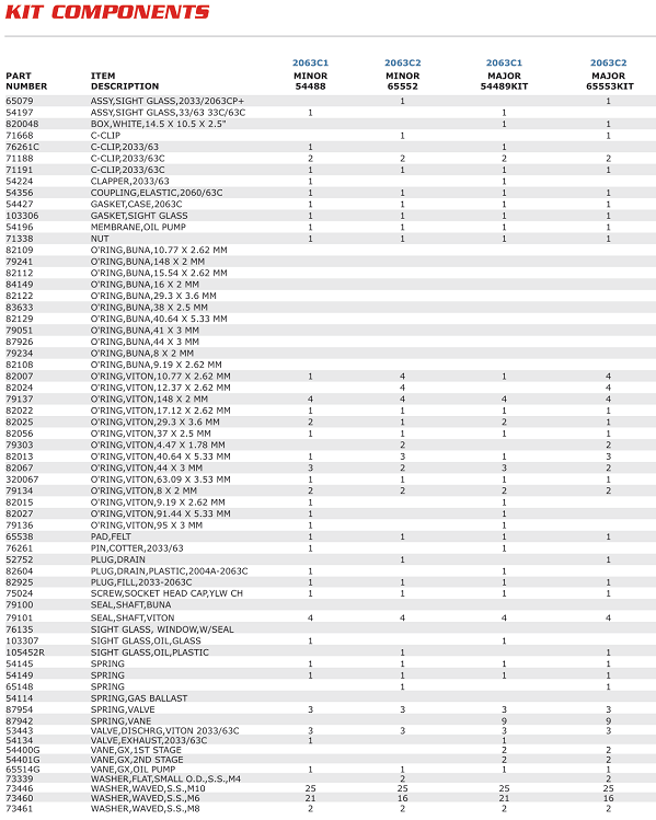 PHỤ TÙNG BƠM CHÂN KHÔNG ALCATEL 2033 C2 | ALCATEL KITS AND SPARES 2033 C2
