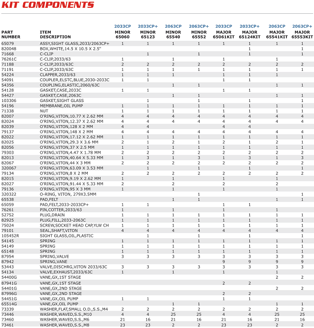PHỤ TÙNG BƠM CHÂN KHÔNG ALCATEL 2033 CP+ | ALCATEL KITS AND SPARES 2033 CP+