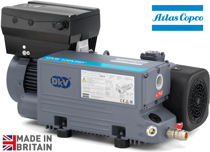 - Bơm chân không Atlas Copco GVS 80 VSD⁺ được sản xuất và chế tạo tại nhà máy thuộc Tập đoàn Atlas Copco. Made in UK. DKV VIET NAM nhập khẩu, phân phối và service tại Việt nam.