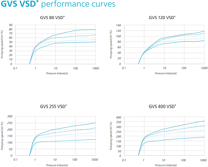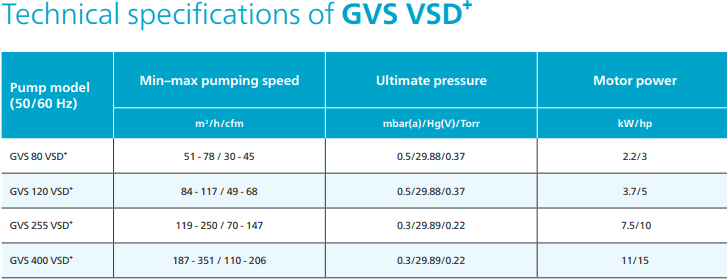 Dòng GVS VSD⁺ là dòng sản phẩm mạnh được đánh giá cao với thiết kế công nghệ tiên tiến, tích hợp công nghệ truyền động biến tần VSD⁺ nằm trên đỉnh máy bơm đảm bảo áp suất chân không, giám sát thông qua app, bluetooth được xử lý bởi Atlas Copco.
