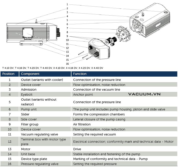 - Bơm chân không Beker T 4.25 DV được chế tạo và sản xuất tại Nhà máy của Becker GmbH, thủ phủ công nghiệp nước Đức - Wuppertal. Made in Germany.