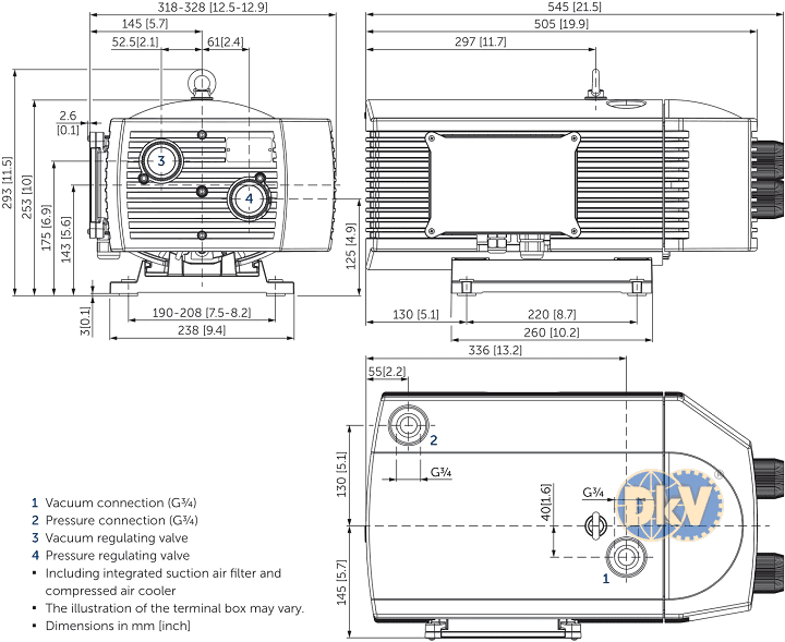 - Valve chỉnh áp và valve chỉnh độ chân không bố trí phía đầu bơm, cho phép điều chỉnh tăng/giảm nhanh chóng, dễ dàng.