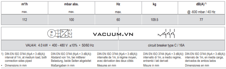 - Bơm chân không Beker VARIAIR KVT 3.100/0-400 có độ ồn trung bình: 77 dB(A).