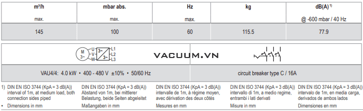 - Bơm chân không Beker VARIAIR KVX 3.140/0-400 có độ ồn trung bình: 77.9 dB(A).