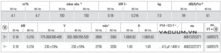 BƠM CHÂN KHÔNG BECKER VT 4.4 | BECKER VACUUM PUMP VT 4.4 | 4.1 m3/h | 150 mbar