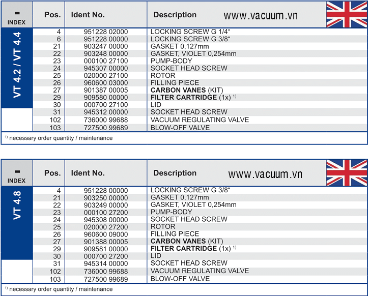 - Để việc vận hành bơm chân không khô Beker VT 4.4 hoàn chỉnh, quý khách lên lắp thêm: áp kế (đồng hồ đo chân không - vacuum gauge) để giám sát độ chân không của bơm. Cũng như lọc gió đầu vào (air inlet filter) để hạn chế bụi, dị vật lọt vào bơm.
