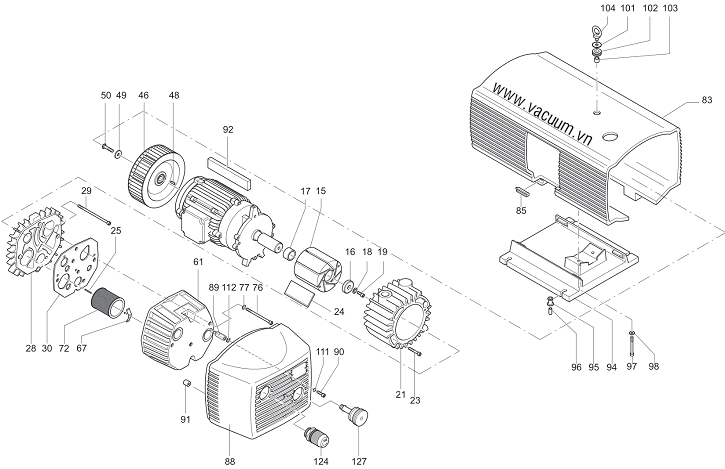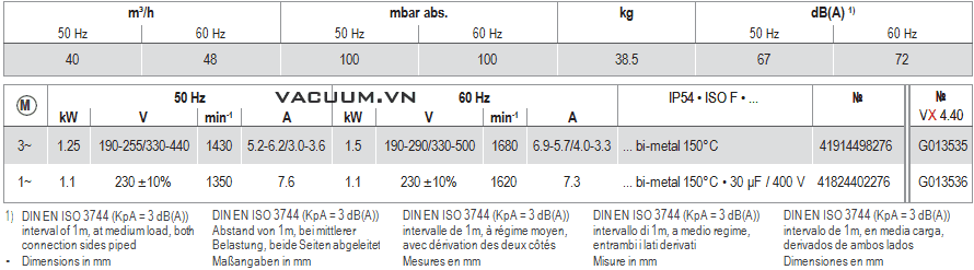 ), thao tác tham khảo video bên dưới. - Bơm chân không Becker VX 4.40 có độ ồn trung bình: 61 dB(A), sử dụng động cơ điện: 0.8 kW, 230V/50Hz/1ph hoặc 0.75 kW, 380 - 400V/50Hz/3ph (cấp bảo vệ IP54.ISO F), tốc độ vòng quay động cơ: 1.350 - 1.430 rpm.