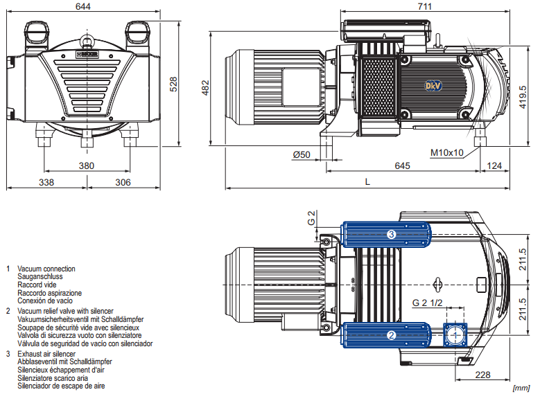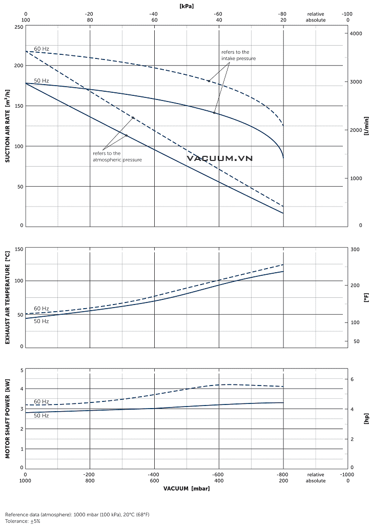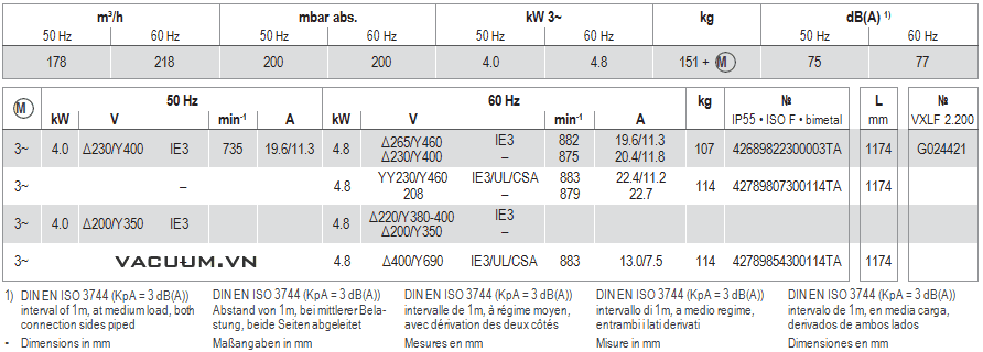 - Bơm chân không Beker VXLF 2.200 có độ ồn trung bình: 75 dB(A), sử dụng động cơ 3 phase 4 kW/380-400V/50-60Hz (cấp bảo vệ IP55.ISO F), tốc độ vòng quay động cơ: 735 vòng/phút.