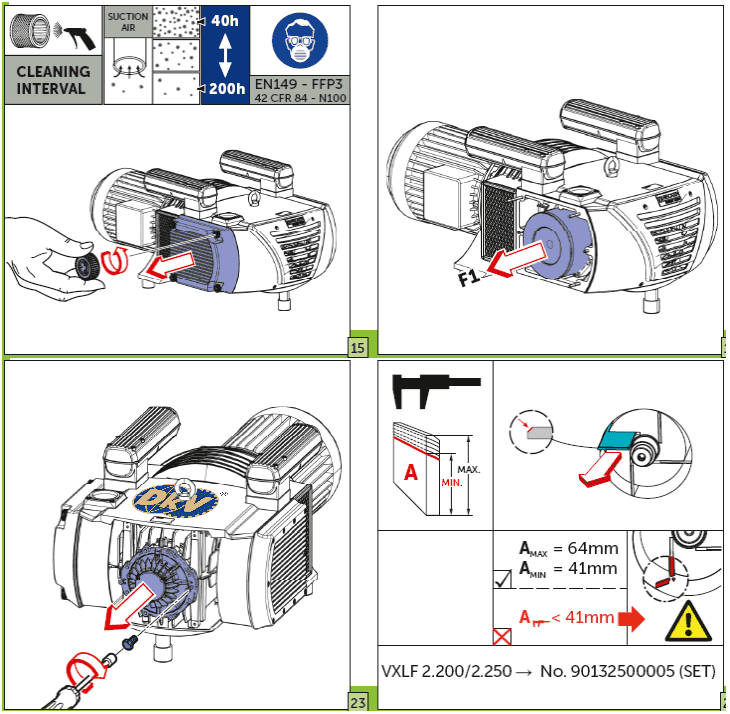 Bơm chân không Beker VXLF 2.200 bảo trì bảo dưỡng đơn giản, có chi phí thấp, chủ yếu thay thế cánh gạt (Mã cánh gạt Becker: 90132500005