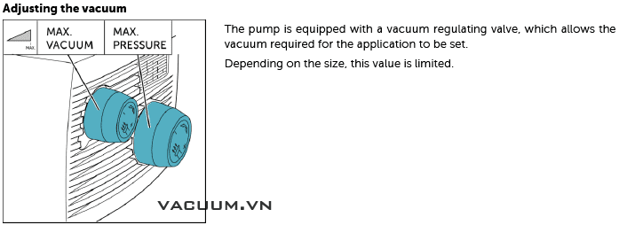 - Valve chỉnh áp và valve chỉnh độ chân không bố trí phía đầu bơm, cho phép điều chỉnh tăng/giảm nhanh chóng, dễ dàng.
