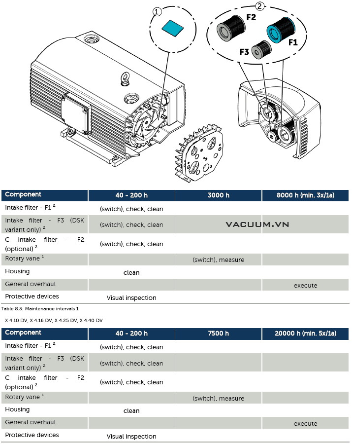 Bơm chân không Beker X 4.16 DV bảo trì bảo dưỡng đơn giản, có chi phí thấp, chủ yếu thay thế cánh gạt (Mã cánh gạt Becker: 90141200007