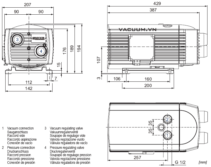 BƠM CHÂN KHÔNG BECKER X 4.16 DV | BECKER VACUUM PUMP X 4.16 DV | 16 m3/h | +/- 0.5 bar