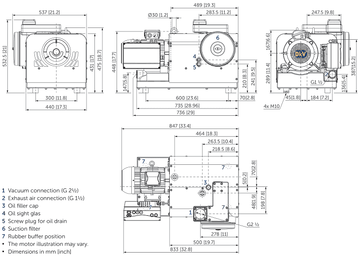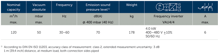 - Bơm chân không Becker VARIAIR BCV 100 sử dụng động cơ 4 kW/400 - 480V/50Hz/3ph, cấp bảo vệ IP55, có độ ồn trung bình: 70 dB(A).