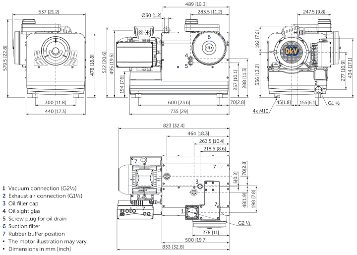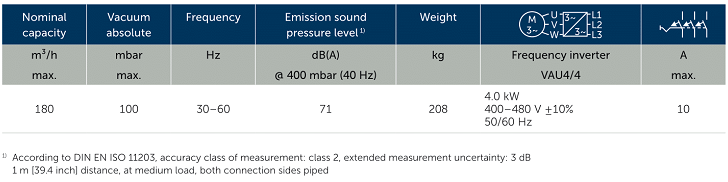 - Bơm chân không Becker VARIAIR BCV 150 sử dụng động cơ 4 kW/400 - 480V/50Hz/3ph, cấp bảo vệ IP55, có độ ồn trung bình: 71 dB(A).