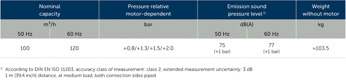 - Máy nén khí Becker BCP 100, Becker claw compressor BCP 100 thuộc dạng máy nén khí khô, không dầu (Dry compressor) cỡ lớn, có lưu lượng max: 100 m3/h, áp suất làm việc đạt 0.8 - 2 bar.