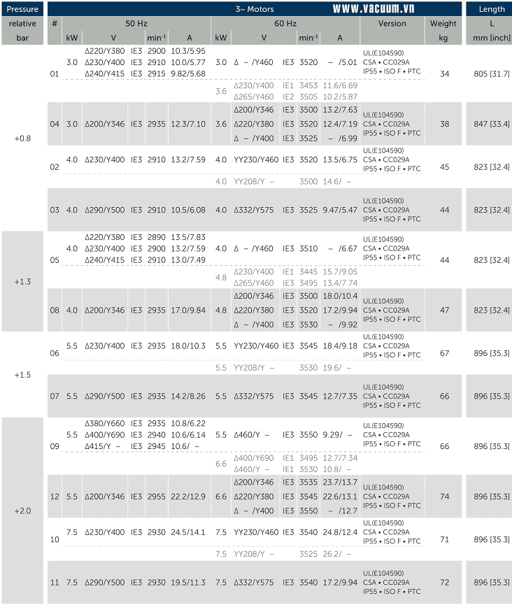 - Máy nén khí Becker BCP 100 sử dụng động cơ 3 - 7.5 kW/230 - 400V/50Hz/3ph, cấp bảo vệ IP55, tốc độ vòng quay động cơ: 2.890 - 2.955 vòng/phút, có độ ồn trung bình: 75 dB(A).