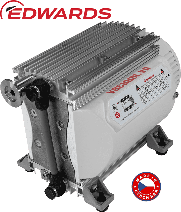 - Bơm chân không Edwards XDD1, bơm hút chân không Edwards XDD1 thuộc dạng bơm hút chân không màng, khô, không dầu (Dry vacuum pump), có lưu lượng max: 1.2 m3/h (AC), 0.6 m3/h (DC), độ chân không max: 2 mbar, chuyên dùng để hút chân không trong công nghiệp.