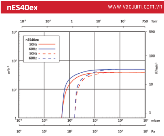 - Bơm chân không Edwards nES40ex có độ ồn max: 58 dB(A), sử dụng động cơ phòng cháy nổ: 1.5 kW, điện áp 220V/50-60Hz/1ph hoặc 380V/50-60Hz/3ph, tiêu chuẩn ATEX 2014/34/EU, cấp bảo vệ IP55.