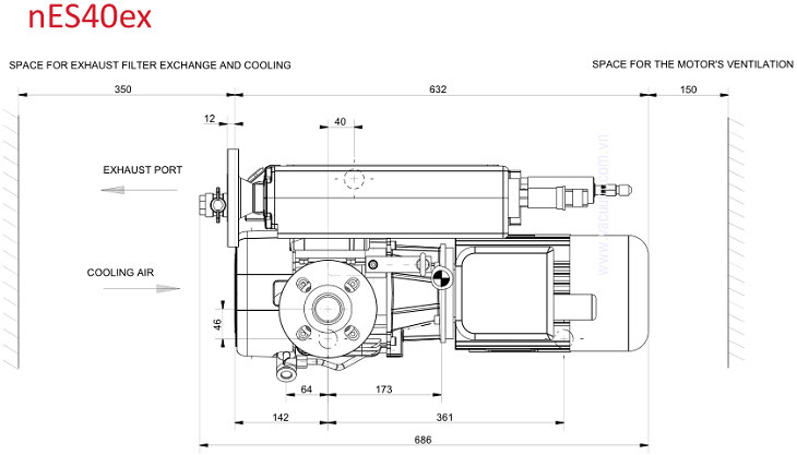 - Kích thước (dài x rộng x cao): 686 x 356 x 303 mm. Trọng lượng bơm chân không chống cháy nổ Edwards nES40ex (chưa đổ dầu): 67 kg.