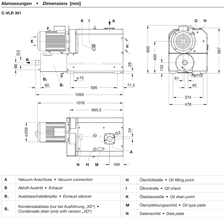 - Bơm chân không Elmo Rietschle C-VLR 401 có độ ồn max: 77 dB(A)