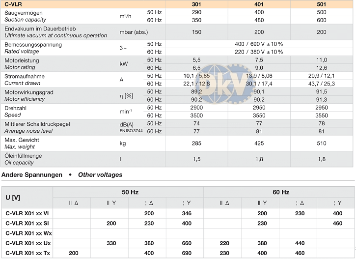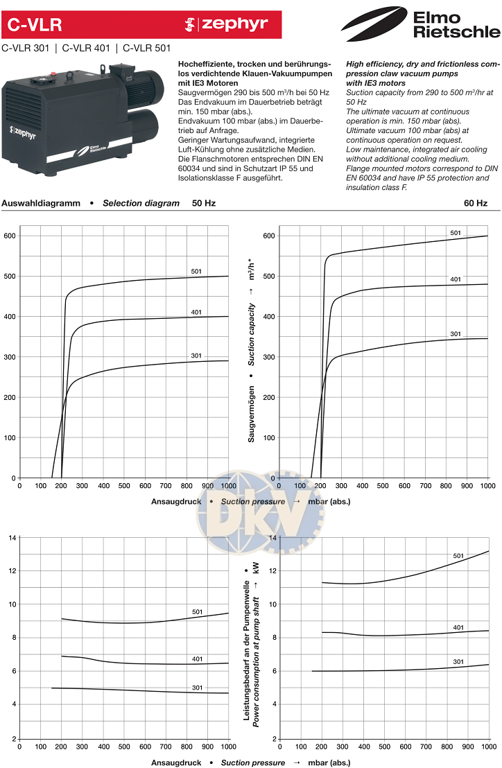 - Bơm chân không Elmo Rietschle C-VLR 401, Elmo Rietschle dry running claw vacuum pump C-VLR 401 thuộc dạng bơm hút chân không khô, không dầu (Dry vacuum pump) có lưu lượng: 400 m3/h, độ chân không đạt 200 mbar chuyên dùng để hút chân không trong công nghiệp.