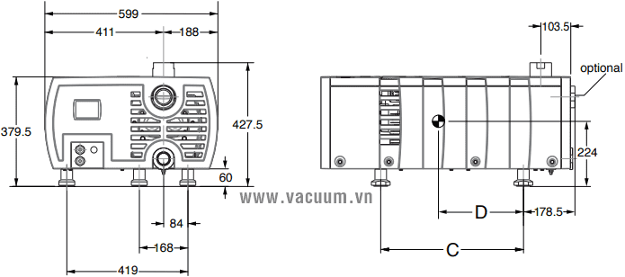 - Trọng lượng bơm chân không Leybold VARODRY VD 65 : 90 kg.