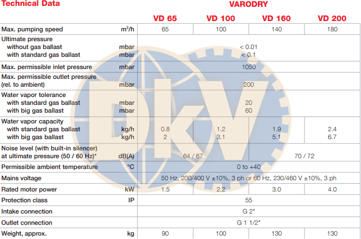 - Bơm chân không Leybold VARODRY VD 65 hoạt động êm ái, có độ ồn max: 64 / 67 dB(A).