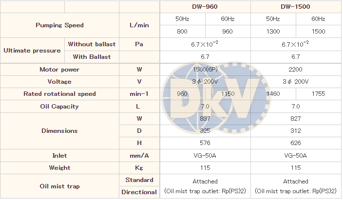 - Bơm chân không Sato DW-1500, bơm hút chân không Sato DW-1500, Sato Oil Lubricated Rotary Vane Vacuum Pumps DW-1500: thuộc dạng bơm hút chân không vòng dầu (oil-flooded), 2 cấp (dual stage), do Sato Vac Inc/Japan sản xuất, có lưu lượng: 1300 lít/phút (78 m3/h), độ chân không: 6.7x10-2 Pa | 6.7x10-4 mbar (khi đóng chấn lưu khí Gas Ballast), chuyên dùng để hút chân không trong công nghiệp.
