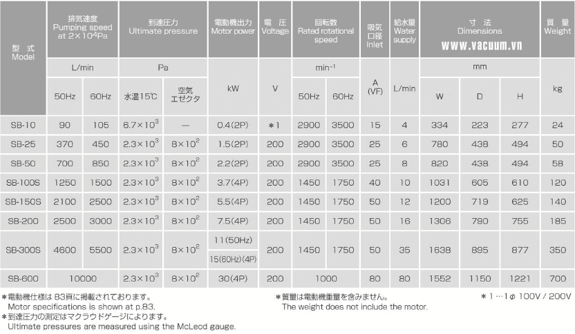 BƠM CHÂN KHÔNG VÒNG NƯỚC SATO SB-10 | SATO WATER RING VACUUM PUMPS SB-10