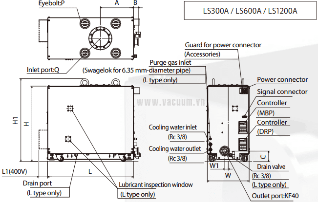 - Size kết nối vào/ra bơm chân không ULVAC LS1200A: ISO-F-100 / KF40.