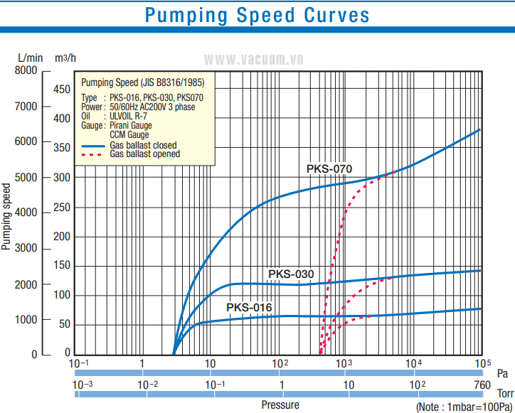 - Bơm chân không ULVAC PKS-016, bơm hút chân không ULVAC PKS-016, ULVAC Oil Sealed Rotary Vacuum Pumps PKS-016 là loại bơm chân không vòng dầu có lưu lượng: 96 m3/hr , độ chân không đạt 2.7 x 10-2 mbar chuyên dùng để hút chân không trong công nghiệp.