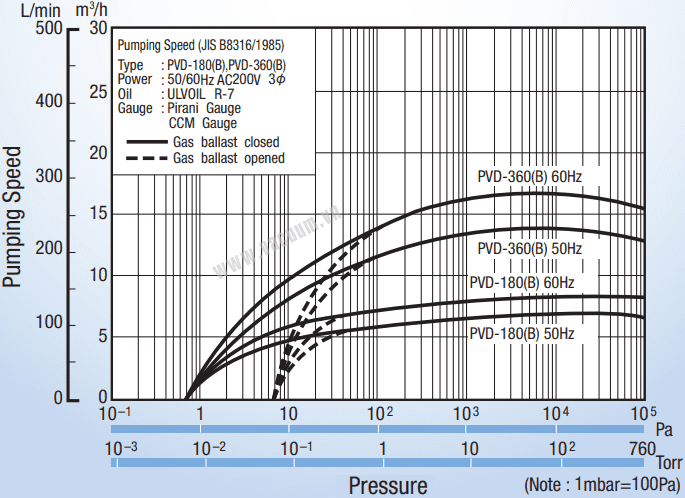 - Bơm chân không ULVAC PVD-360B, bơm hút chân không ULVAC PVD-360B, ULVAC Oil Sealed Rotary Vacuum Pumps PVD-360B là loại bơm chân không vòng dầu có lưu lượng: 19 m3/h , độ chân không đạt 6.7 x 10-3 mbar chuyên dùng để hút chân không trong công nghiệp.