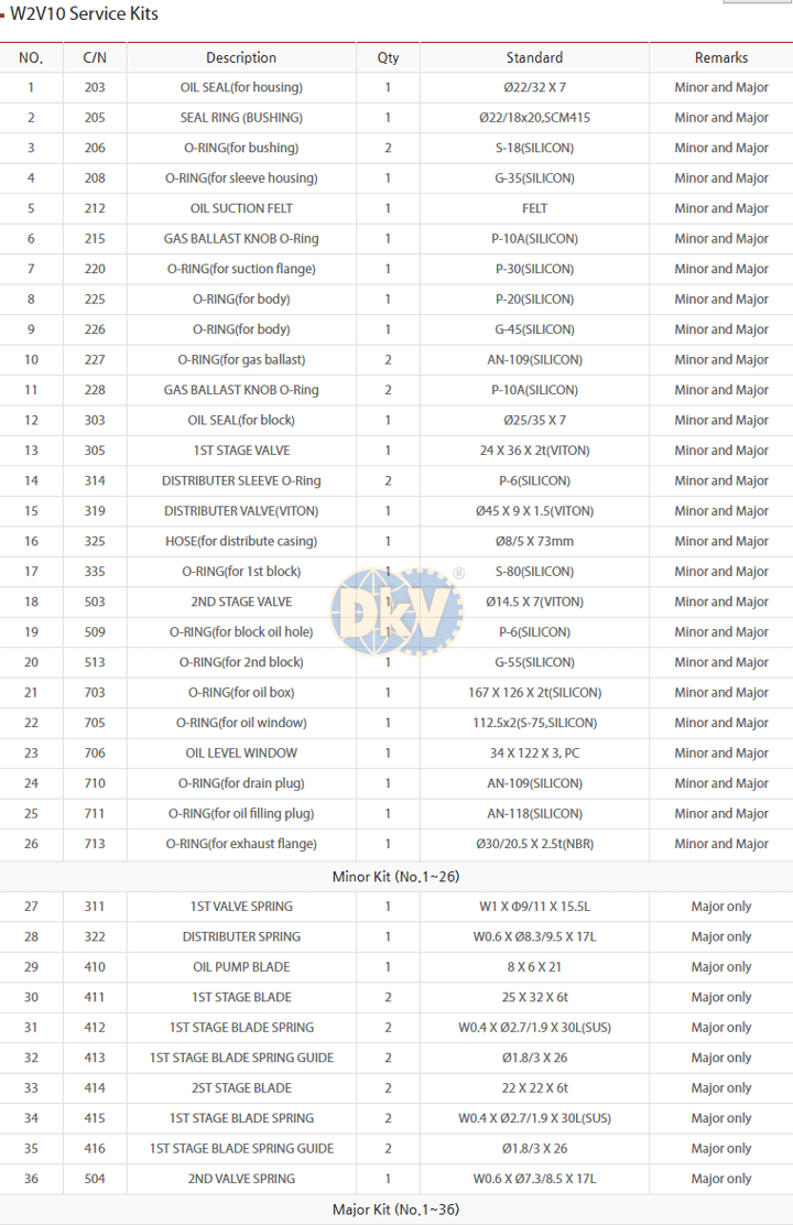 - Bộ phụ kiện bảo dưỡng bơm chân không WSA W2V10 là bộ full phụ kiện bảo trì, bảo dưỡng bơm chân không gồm vòng đệm, valve, seal...