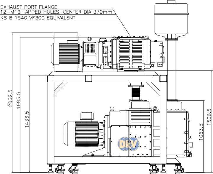 - Bơm chân không tăng áp Bestech MSB(I)-720D55 có bích kết nối khí đầu vào (đối với bơm tăng áp): VG 300 và bích kết nối khí đầu ra (đối với bơm vòng dầu): VG100.