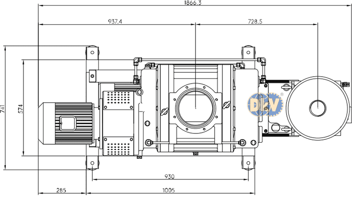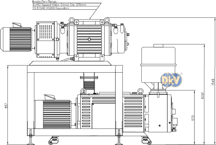 - Bơm chân không tăng áp Bestech MSBM-500S24 có bích kết nối khí đầu vào (đối với bơm tăng áp): VG 200 và bích kết nối khí đầu ra (đối với bơm vòng dầu): VG50.