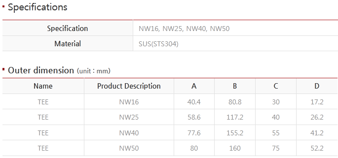 - Cút nối chân không chữ T NW16 được chế tạo bằng vật liệu thép không gỉ SUS (STS304).